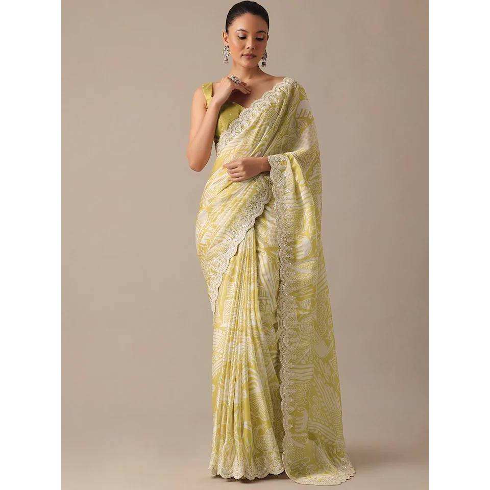 Women's Party Wear Digital Printed Saree with Embroidery Codding Work Set