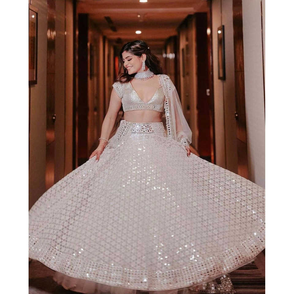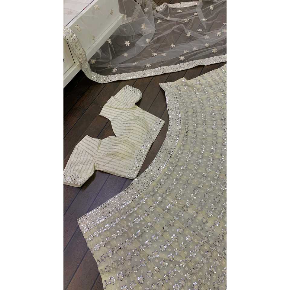 FB Women's White Party Wear Size M Lehenga with Thread & Paper Mirror Work Set