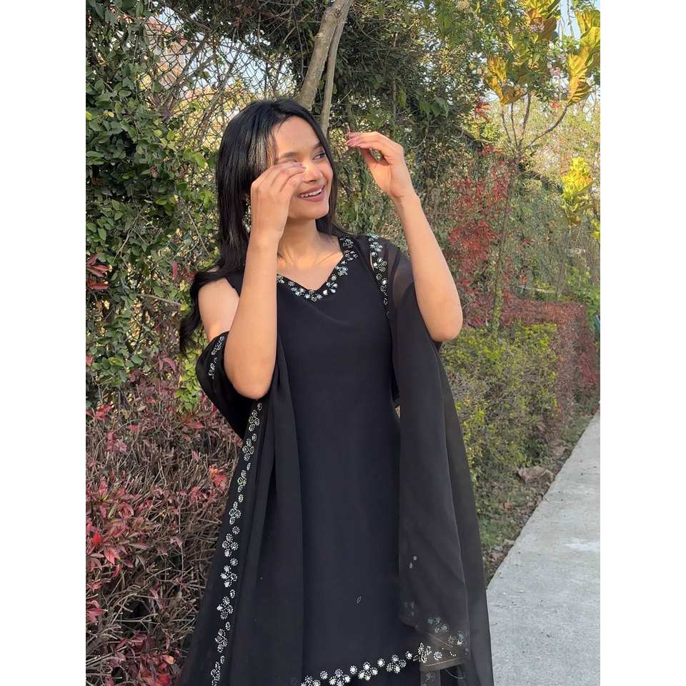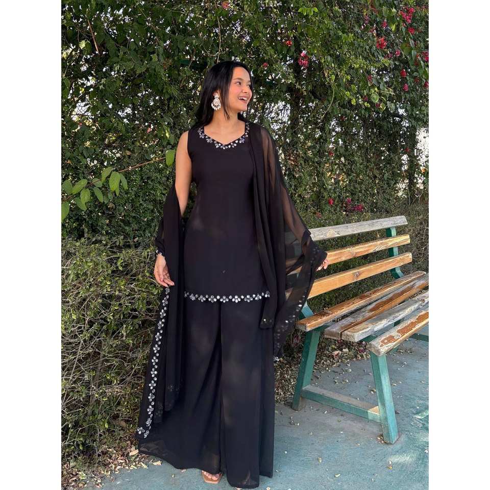 Women's Party Wear Top-Bottom and Dupatta Set with Real Mirror Work