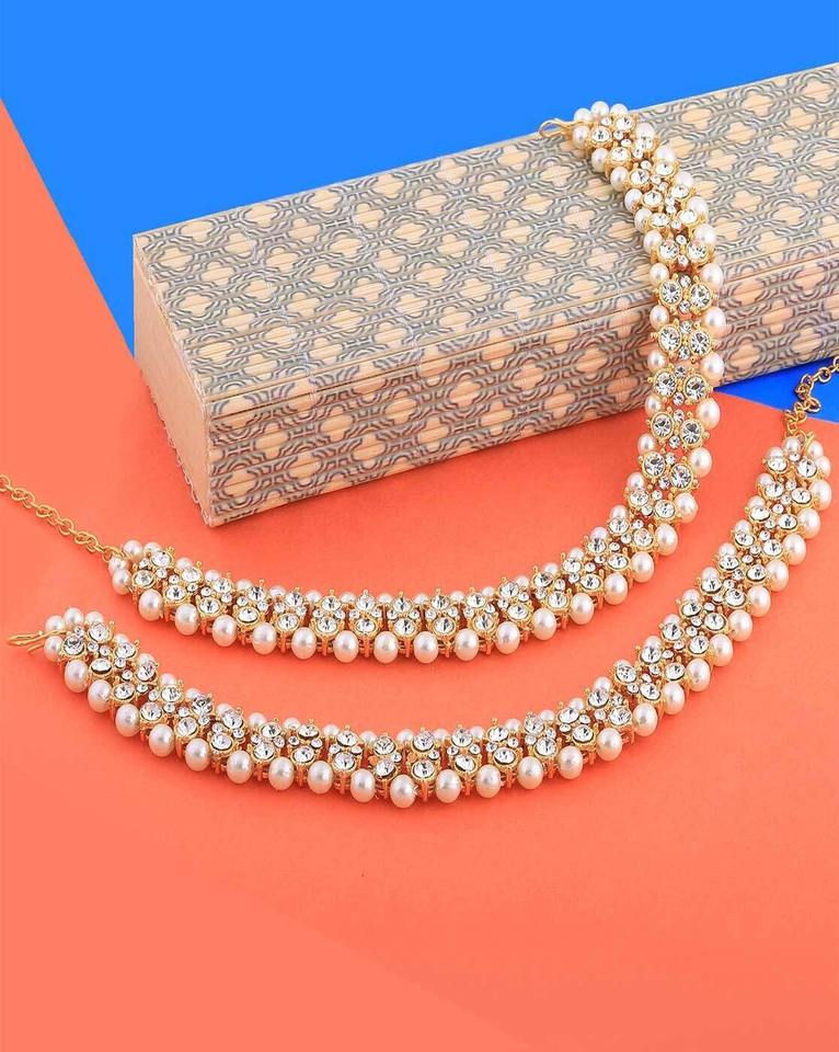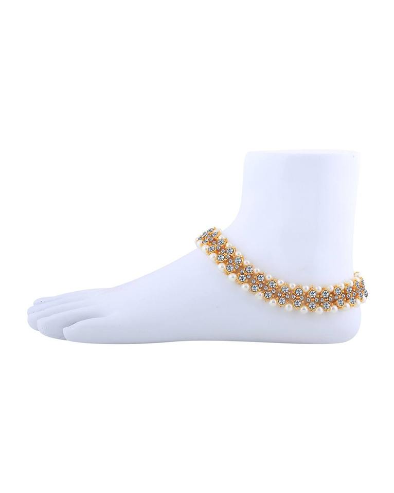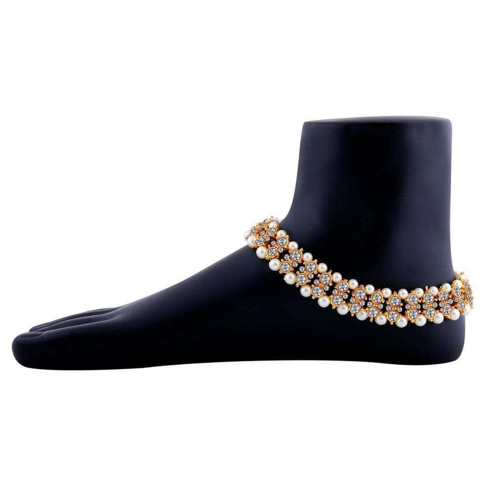 Women's Pearl Kundan Payal Anklet Gold-Plated Bridal Imitation Jewellery Classic Indian Wedding Traditional Design for Parties