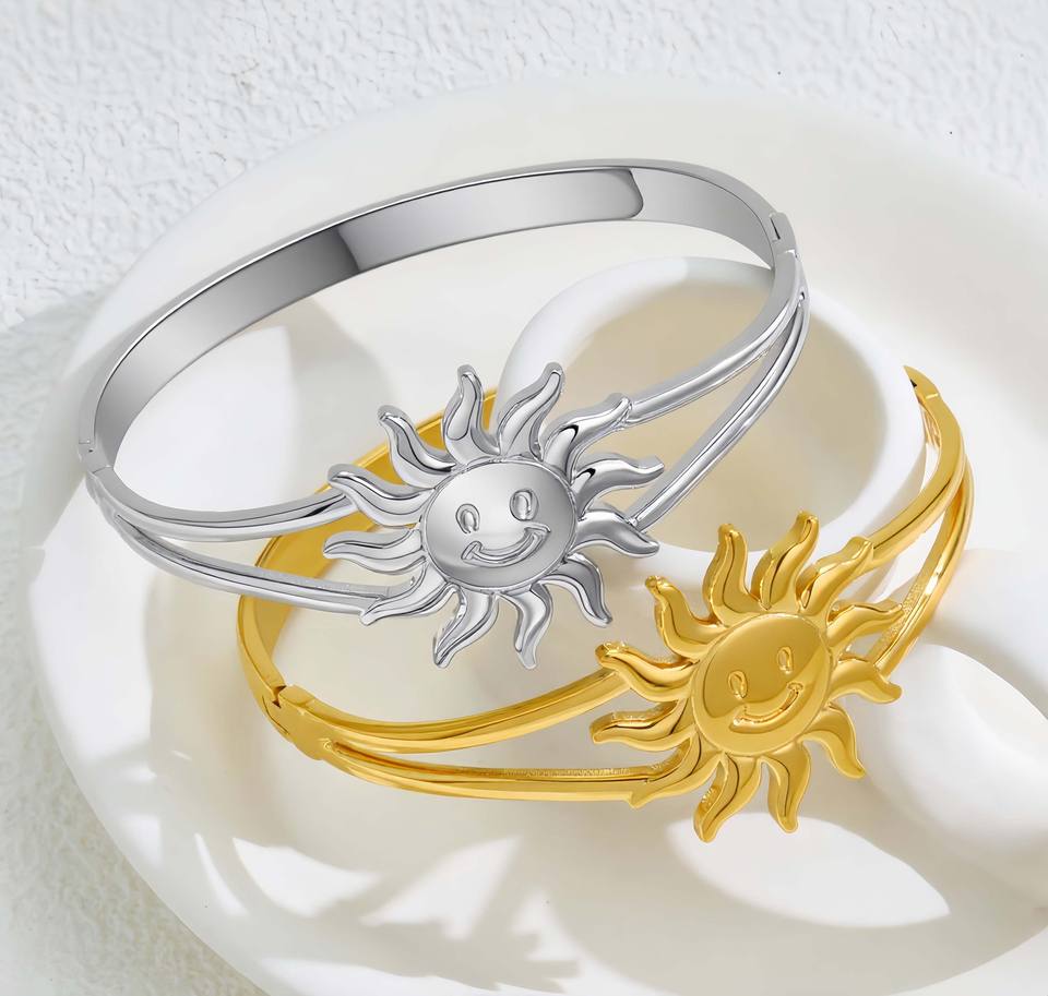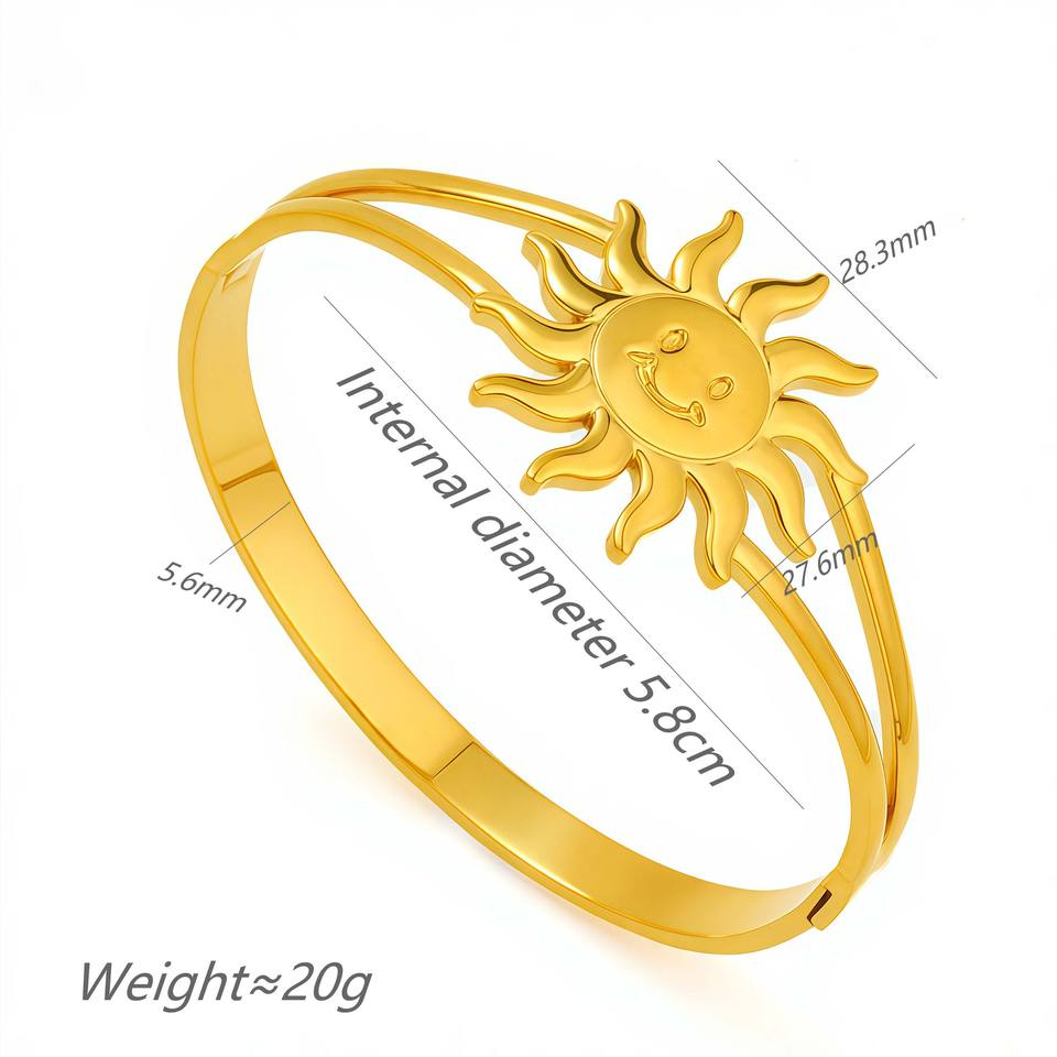 Women's Personality Design for Sun Clasp Bangle 18K Gold Plated Stainless Steel Jewelry Fashionable Daily Layering Versatile