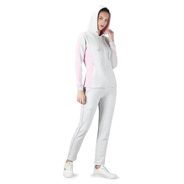 Women's Pink Polycotton Fleece Zipper Track Suit One Set Solid Regular Design Embroidered Bow Button Casual Winter Machine