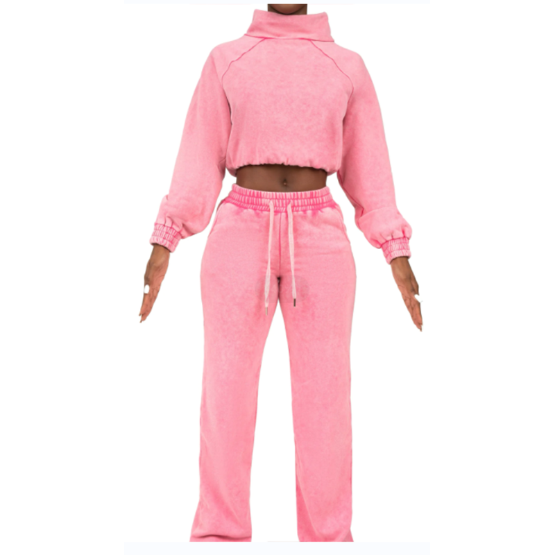 Women's Plus Size Acid Wash Streetwear Sweatsuit Set New Design Funnel Neck Tracksuit Wholesale Funnel Neck Women's Sweat Suits