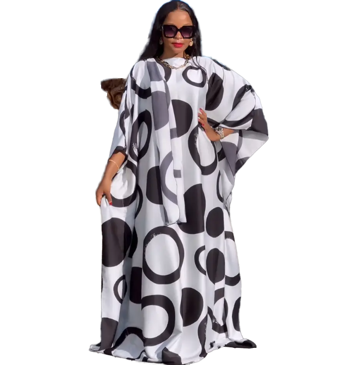 Women's Plus Size African Dashiki Dress with Bat Sleeve Loose Robe and Abaya Printed Polyester Breathable Includes Scarf
