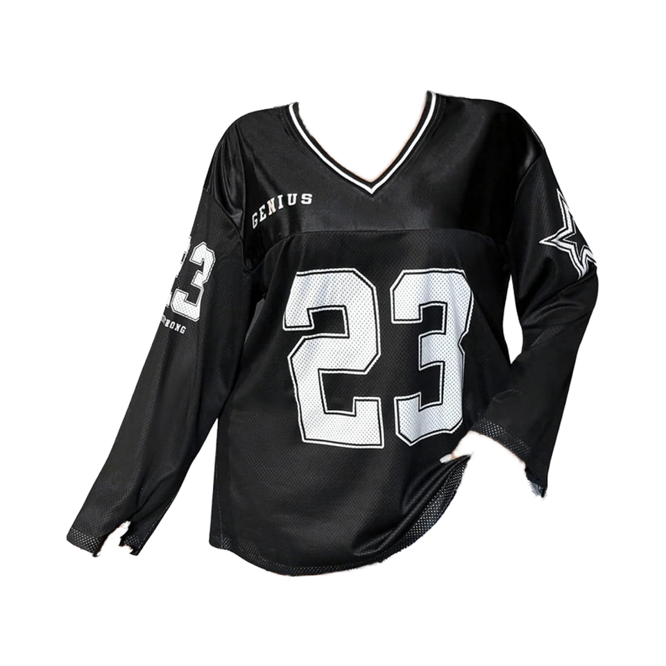 Women's Plus Size Casual V Neck Long Sleeve T Shirt Tops Oversized Mesh Letter Graphic Jersey Shirts with Logo Decoration