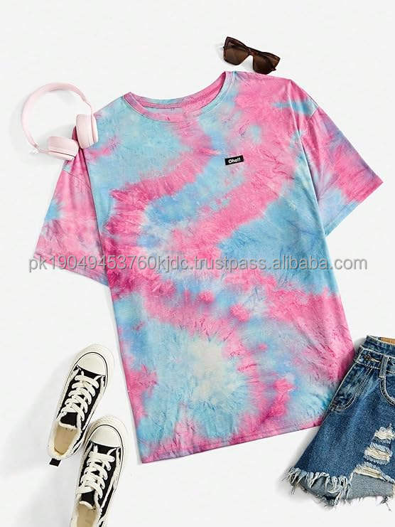 Women's Plus Size Cotton T-Shirt Tie Dye Half Sleeve Casual Oversized Design Spring/Summer Silk Screen Printed Skulls Pattern