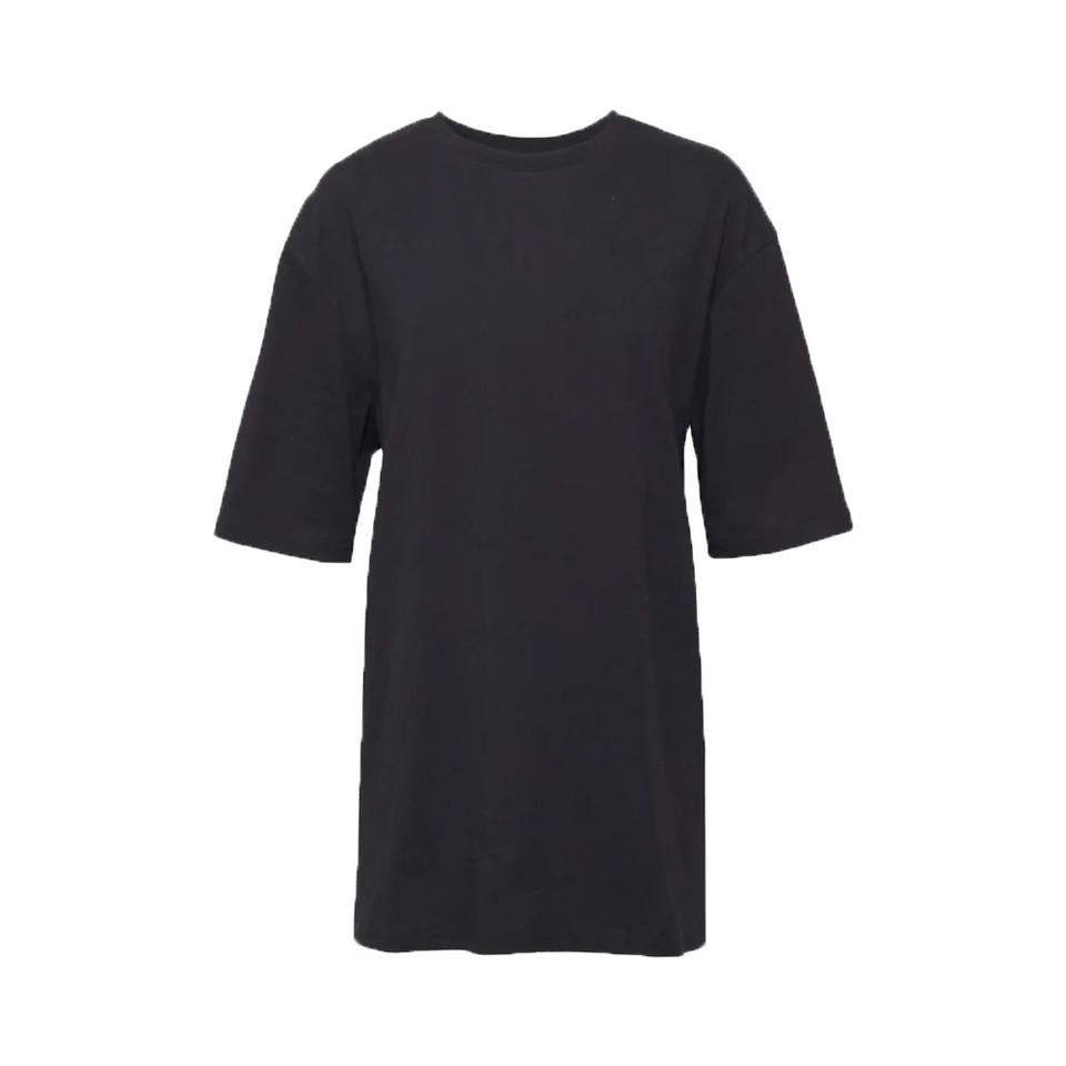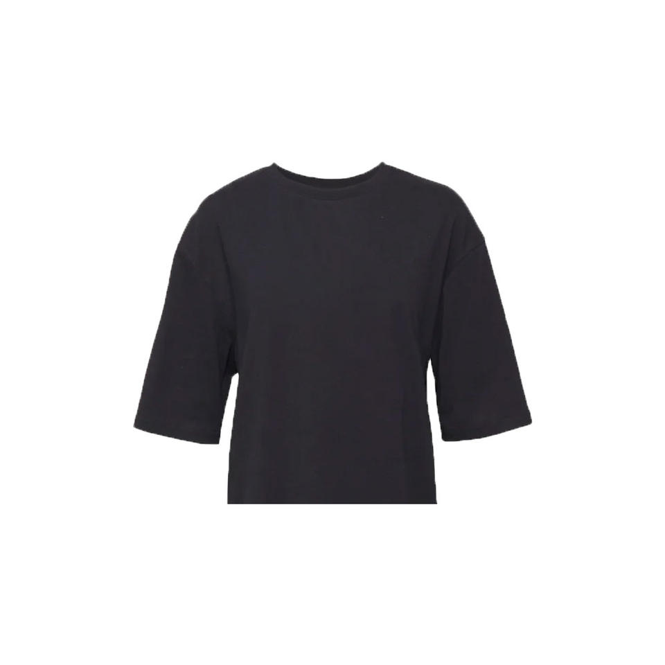Women's Plus Size Crew Neck Half Sleeve Long T-Shirt 100% Organic Cotton Canvas Breathable Eco-Friendly Casual Black Color