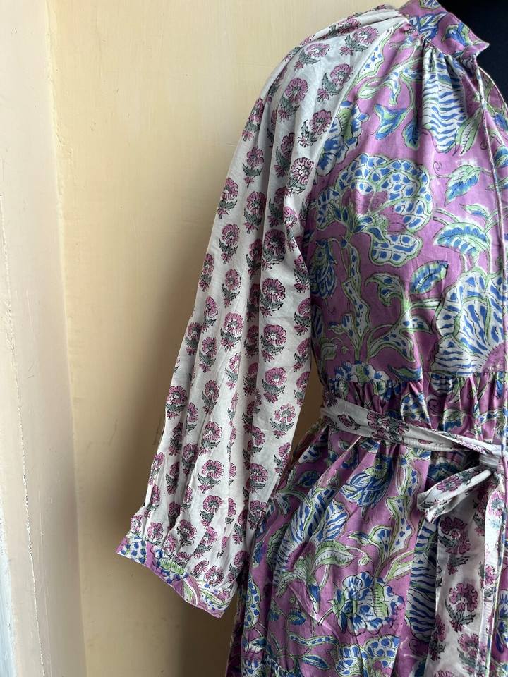 Women's Plus Size Long Sleeve Maxi Dress Block Printed Cotton Mixed Colors Summer Wear with Tassel Decoration 100% Cotton