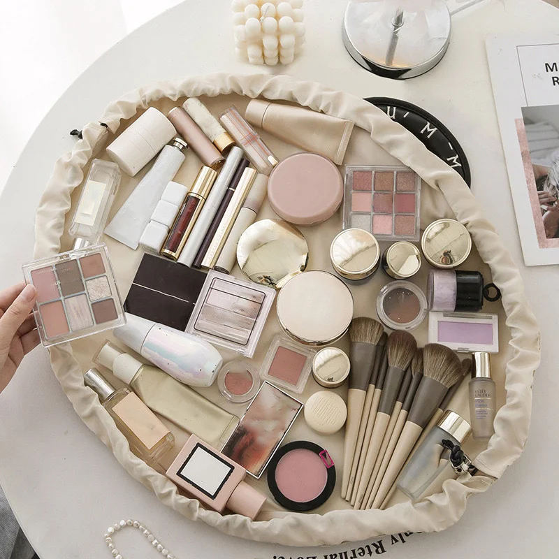 Women's Portable Makeup Organizer Bag Drawstring Large Capacity Cosmetic Storage Pouch for Daily Use Multipurpose Storage Bags