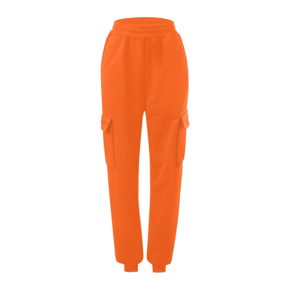Women's Premium Quality 100% Cotton Fleece Cargo Pants Wide Leg High Waist Six Pockets Trousers for Winter Flat Canvas Design