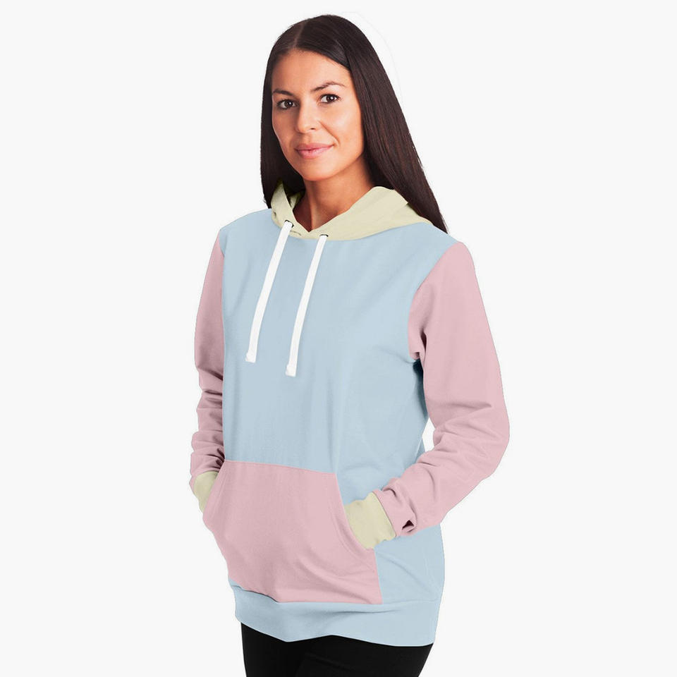 Women 's Pullover Two Tone Fleece Hoodies with Kangaroo Front Pockets / Block Hood for Ladies