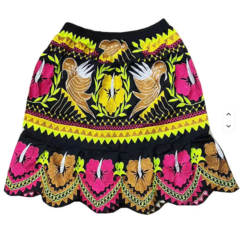 Women's Punk Style Mini Skirt Handmade Embroidery High Quality Cotton Breathable Beach Wear