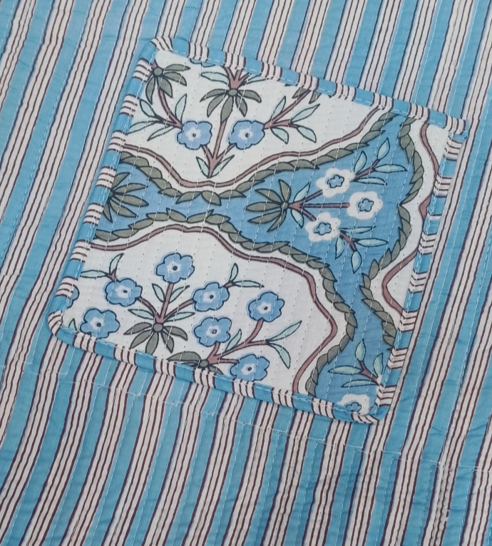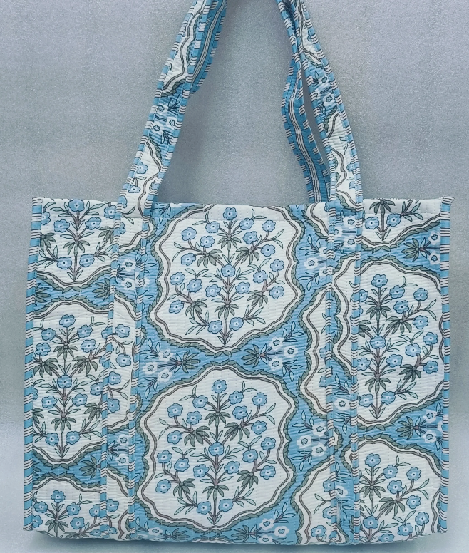 Women's Quilted Cotton Tote Bag with Shoulder Strap Hand Block Printed Fashion Accessory Large Capacity Daily Use Shopping