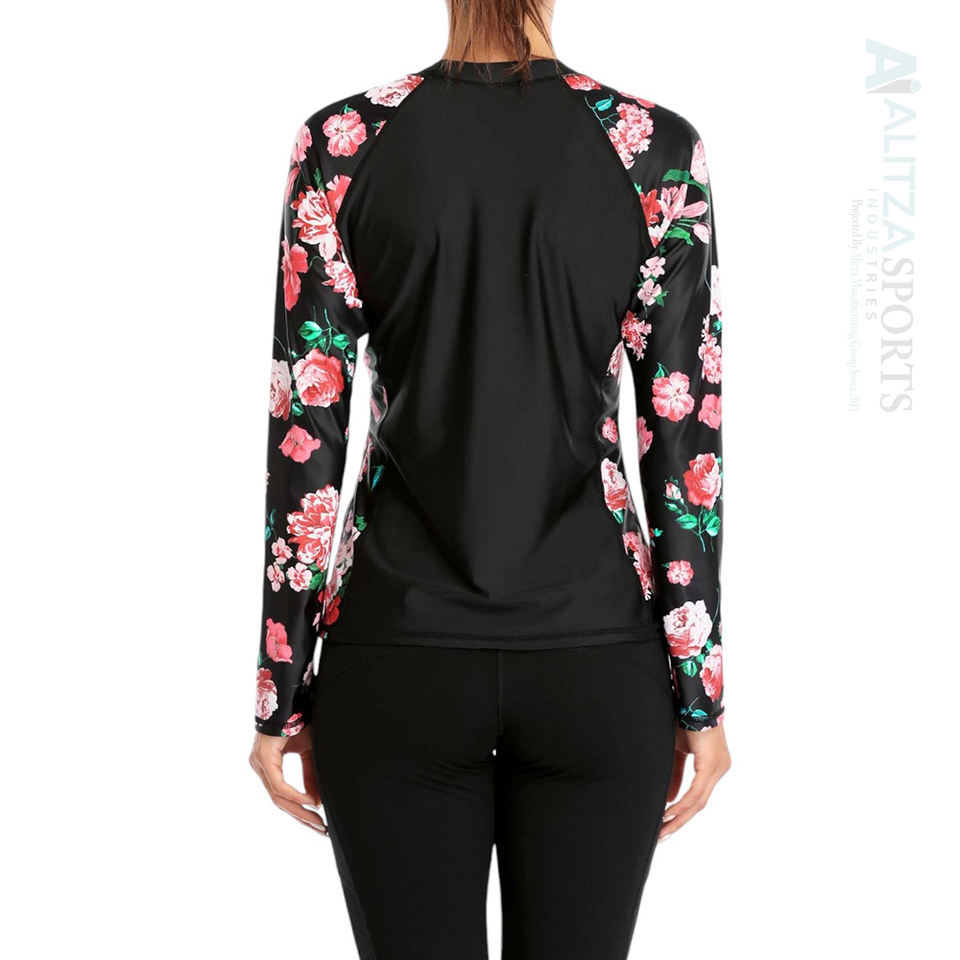 Women's Ready Ship Rash Guard Shirt Moisture Wicking Stretch Fit for Swimming Surfing Running Featuring Paisley Feather