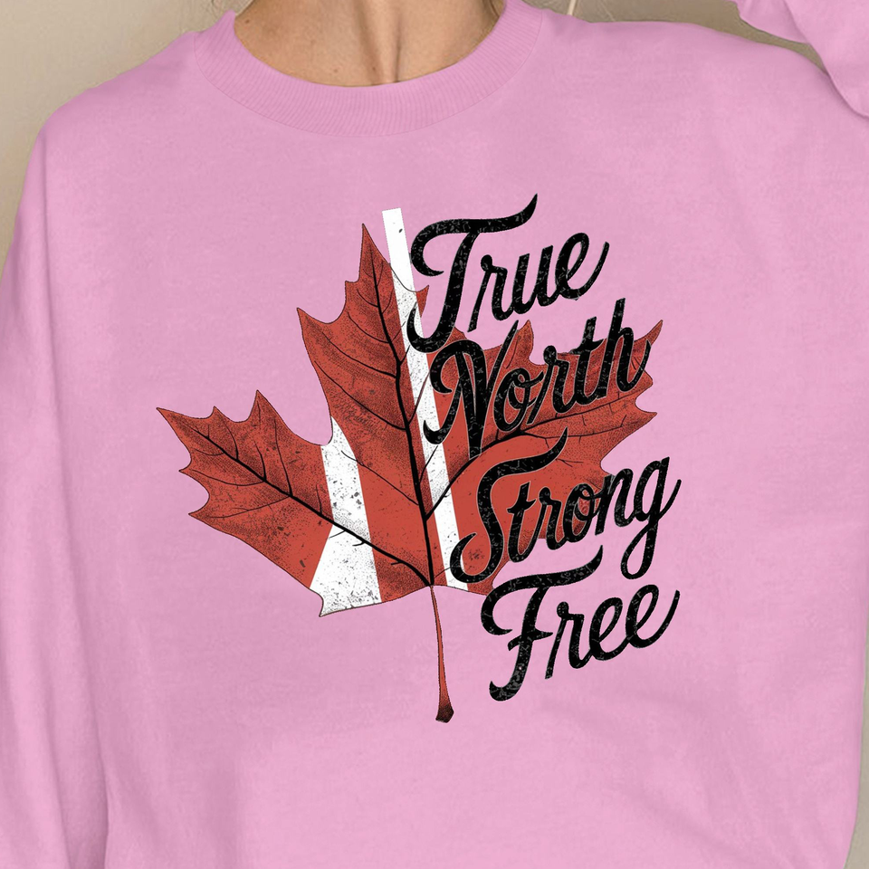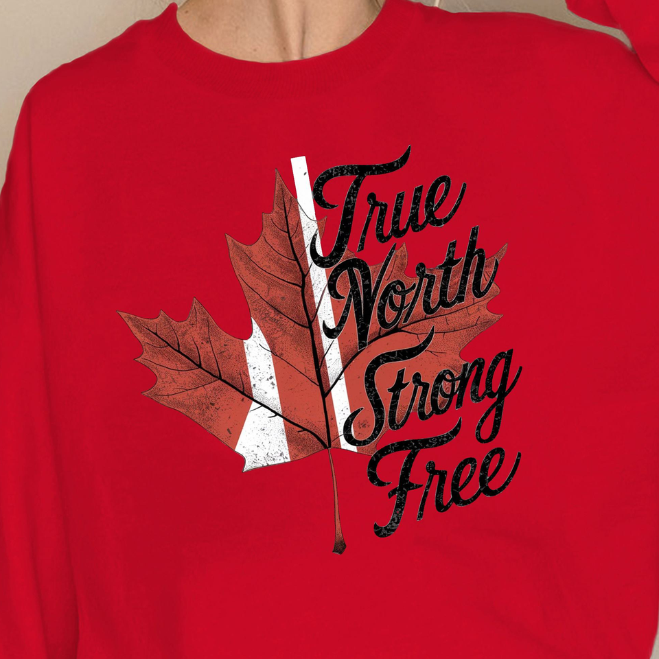Women's Red Maple Leaf Illustration Sweatshirt, Soft Cotton Crew Neck T-Shirt.