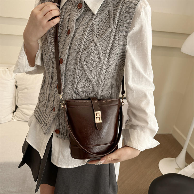 Women's Retro Casual Bucket Bag, High-end Leopard Print Handbag, Cross-border Fashionable Single Shoulder Crossbody Bag