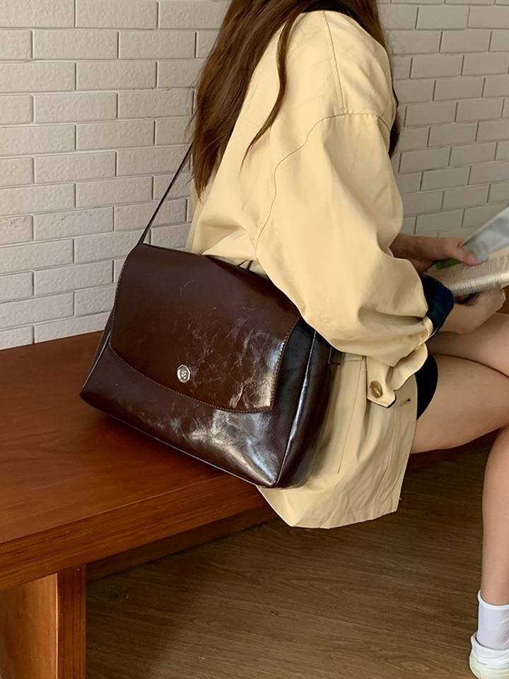 Women's Retro Large Capacity Simple Messenger Bag with Waterproof Feature New Spring Fashion Polyester Lining Commute Briefcase