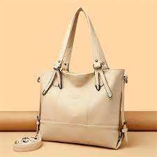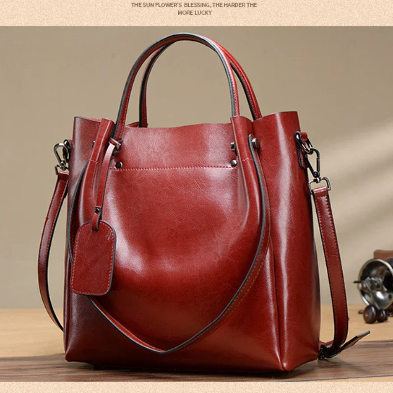 Women's Retro Latest-Style Tote Bag Large-Capacity Single-Shoulder Solid Pattern Button Made Vegetable-Tanned Top-Grain Cowhide