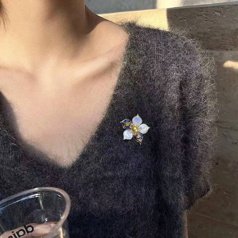 Women's Retro Pattern Natural Pearl Brooch Irregular Niche Design Chest Flower Versatile Fashionable Clothing Accessory