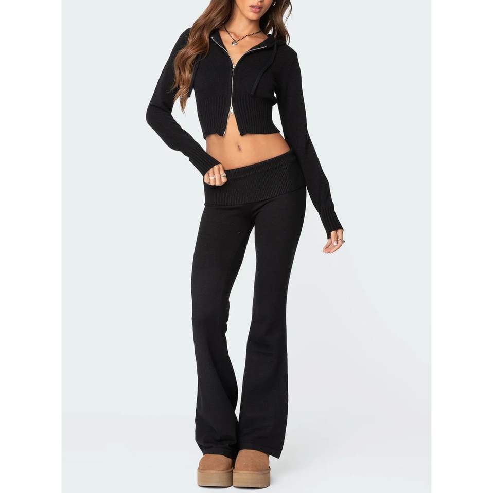 Women's Retro Y2K Streetwear Two-Piece Flared Tracksuit with Zip Hooded Collar and Bootcut Pants Custom Logo Sportswear