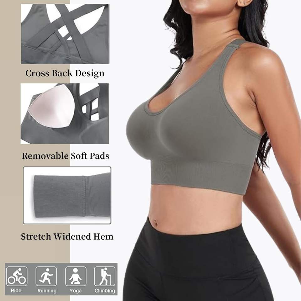 Women's Reversible High-Impact Sports Bras with Padded Strappy Cross Back Design Supportive Comfortable for Active Lifestyle