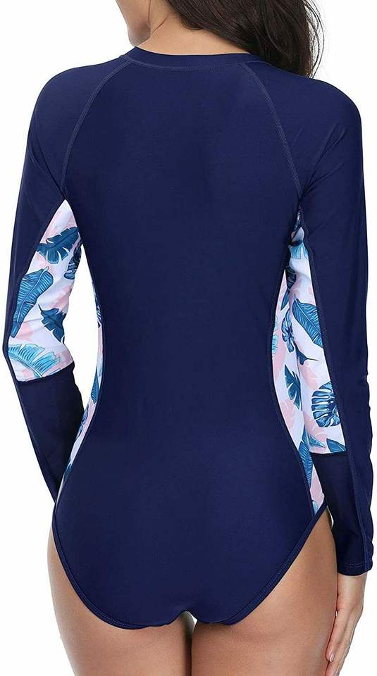 Women's Reversible One-Piece Swimsuit Long Sleeves Zipper UV Protective Rash Guard for Surfing Maternity Style Print Pattern