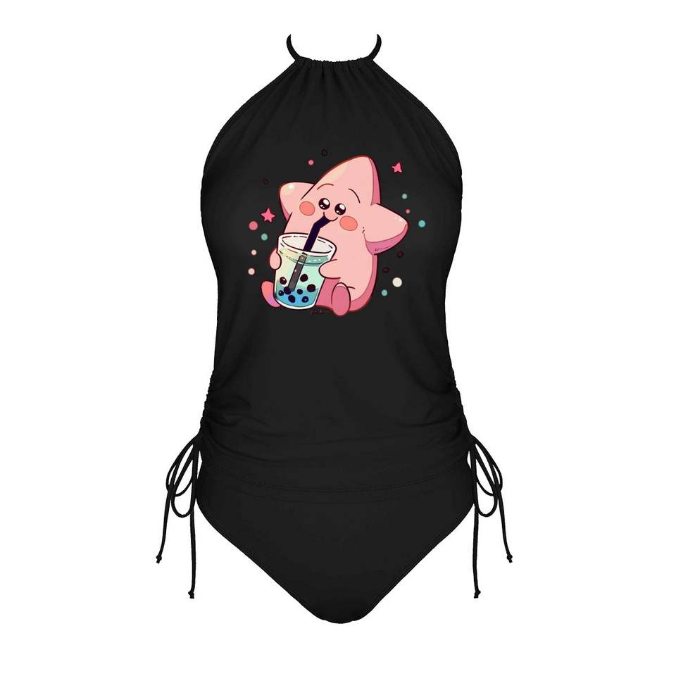 Custom image Women's Reversible Two-Piece Tankini Set Floral and Solid Pattern Bandeau Bra with Thongs Bottom Plus Size XXL Made in USA