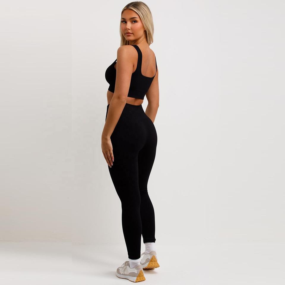 Women's Ribbed Gym Set Two-Piece Leggings and Crop Top Outfit Available in Other Colours