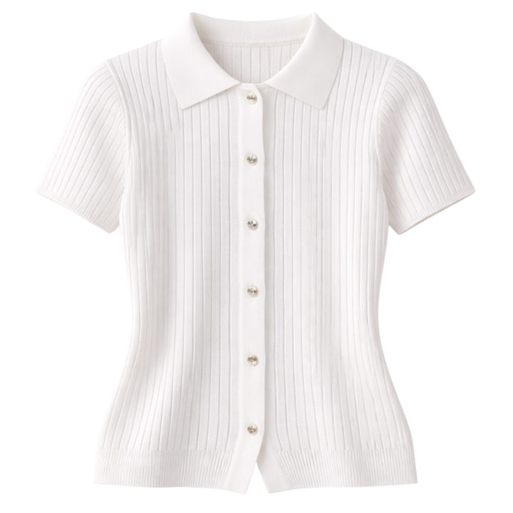 Women’s Ribbed Knit Button Front Top Short Sleeve Collared Cardigan Style Slim Fit Casual Summer Elegant Blouse Everyday Comfort