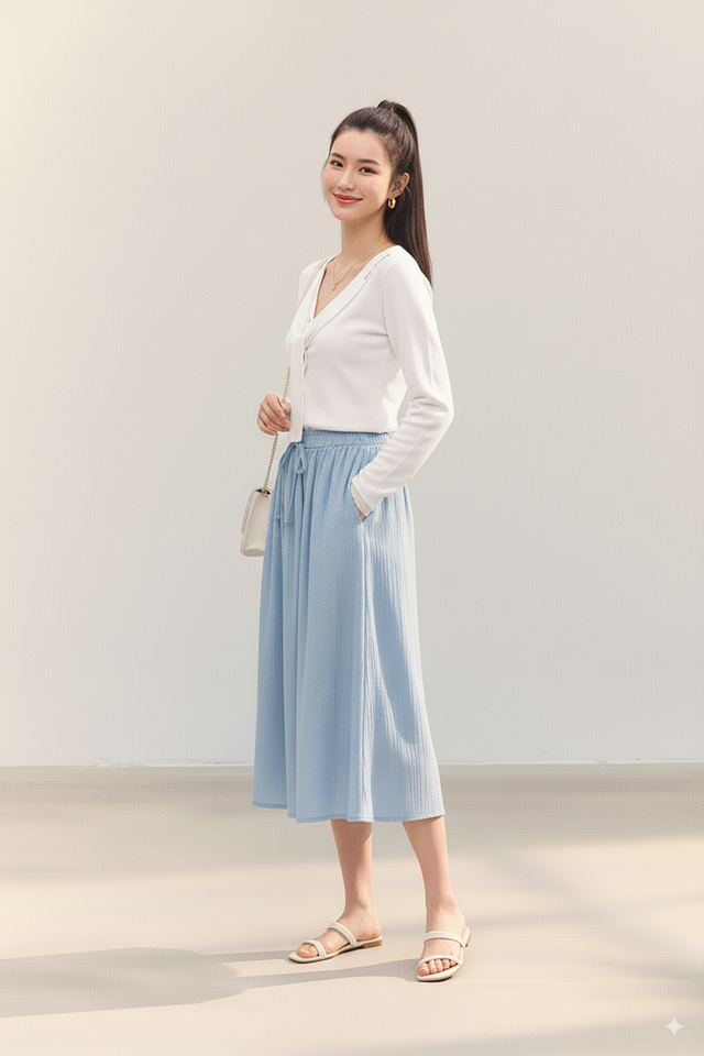 Model Number:DRAWSTRING A-LINE MIDI SKIRT
