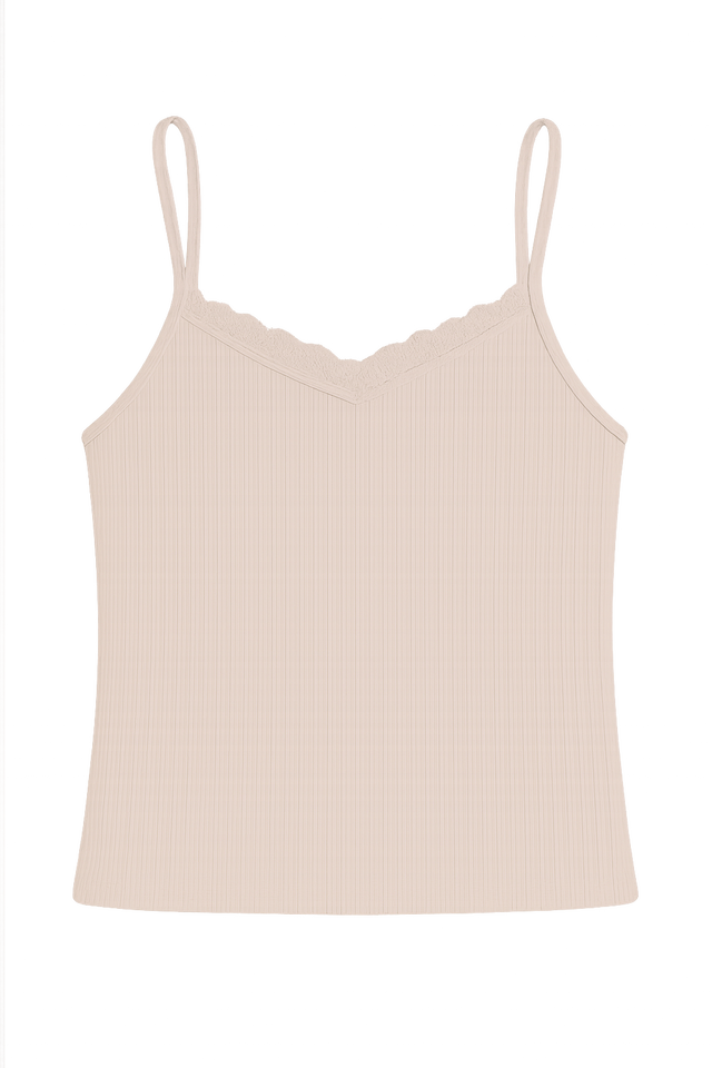 Model Number:RIBBED KNIT LACE TRIM CAMISOLE