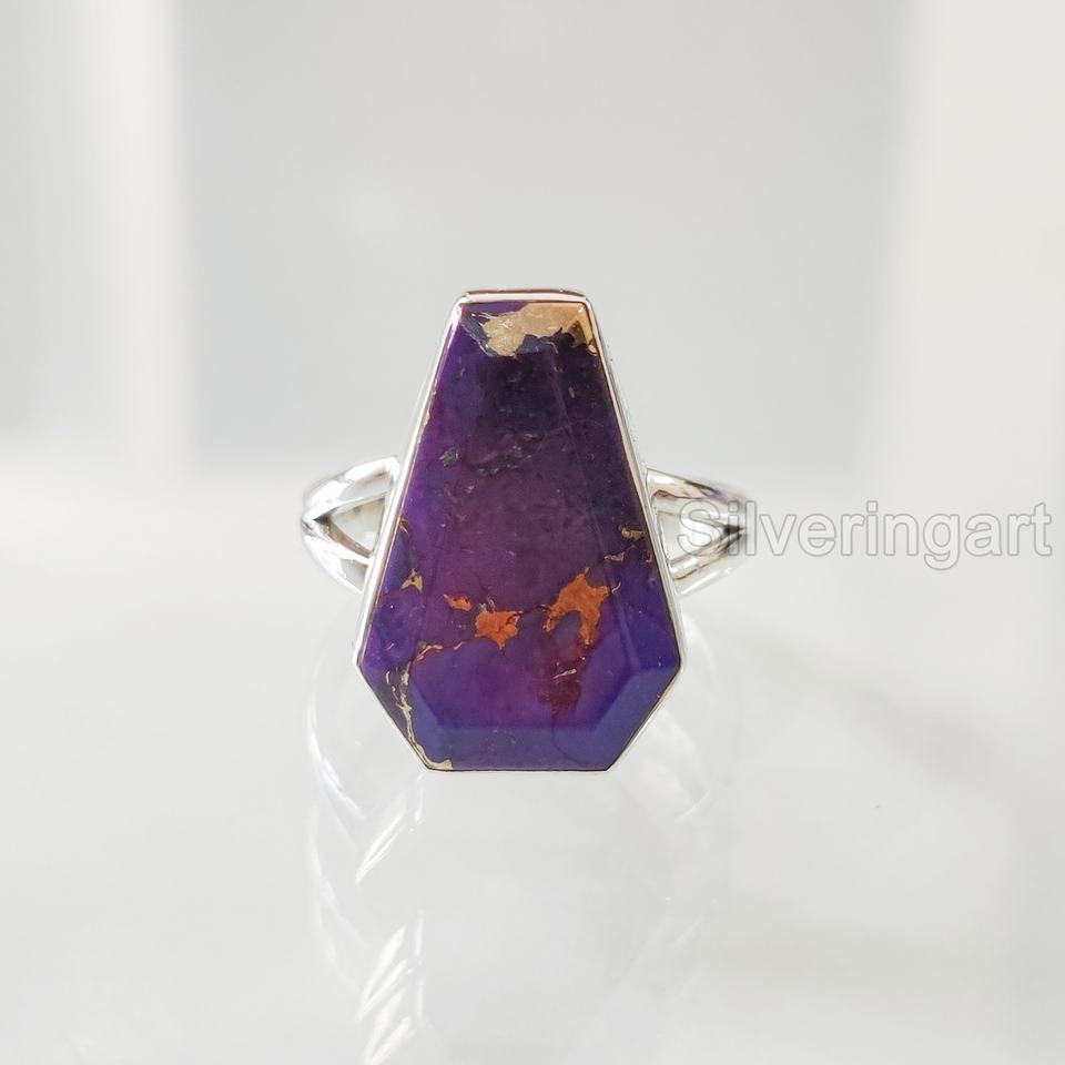 Women's Ring Natural AAA Coffin Purple Copper Turquoise Gemstone December Birthstone Christmas Handmade 925 Sterling Silver Ring