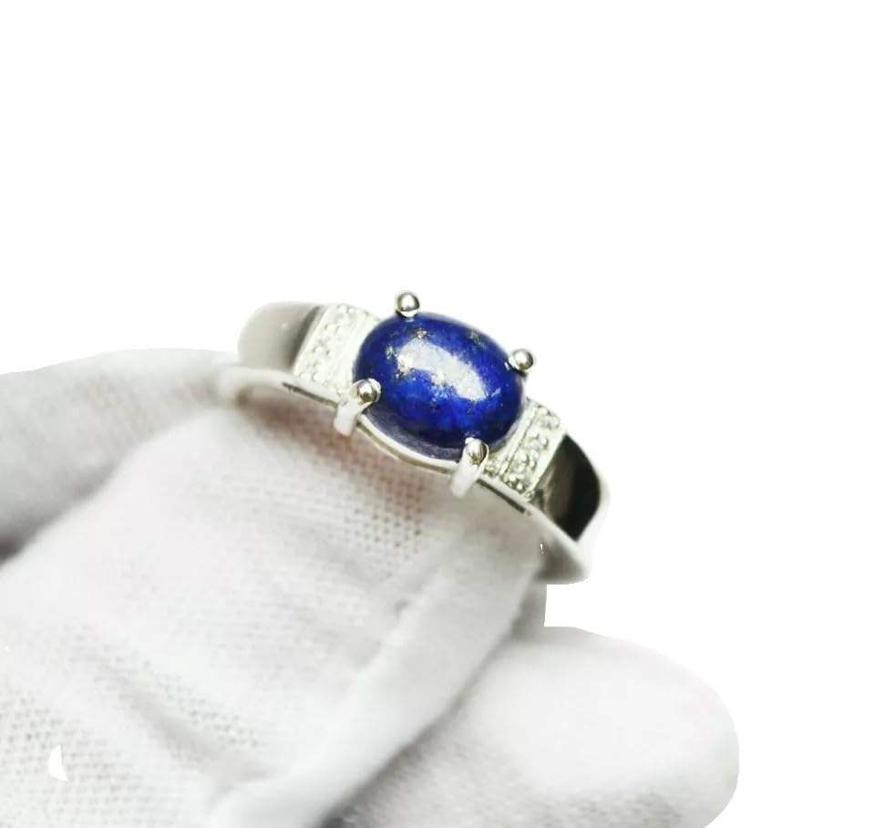 Women's Ring Natural Afghani Lapis Lazuli Gemstone September Birthstone Engagement Minimal Jewelry 925 Sterling Silver Ring