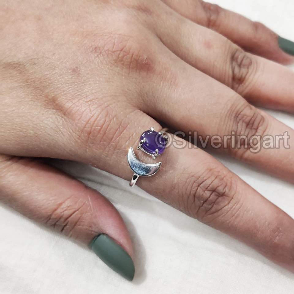 Women's Ring Natural Amethyst Gemstone February Birthstone Crescent Moon Toe Ring Handmade Jewelry 925 Sterling Silver Ring