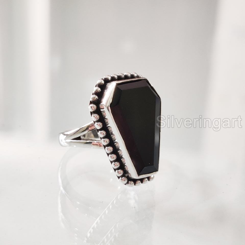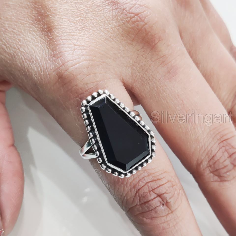 Women's Ring Natural Black Onyx Gemstone December Birthstone Dainty Gypsy Christmas Wedding Handmade 925 Sterling Silver Ring