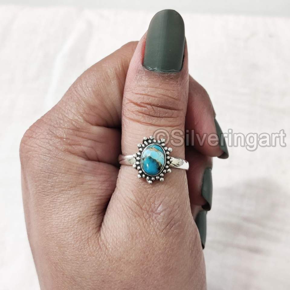 Women's Ring Natural Blue Copper Turquoise Gemstone December Birthstone Toe Ring Handmade Jewelry 925 Sterling Silver Ring