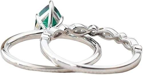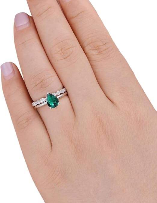 Women's Ring Natural Emerald & CZ Gemstone May Birthstone Wedding Anniversary Tiny Handmade Jewelry 925 Sterling Silver Ring