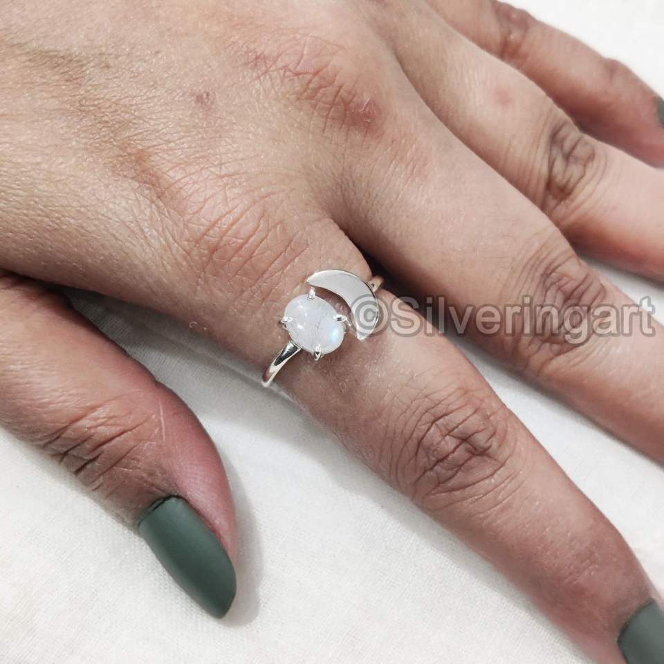 Women's Ring Natural Rainbow Moonstone Gemstone June Birthstone Crescent Moon Toe Ring Handmade Jewelry 925 Sterling Silver Ring