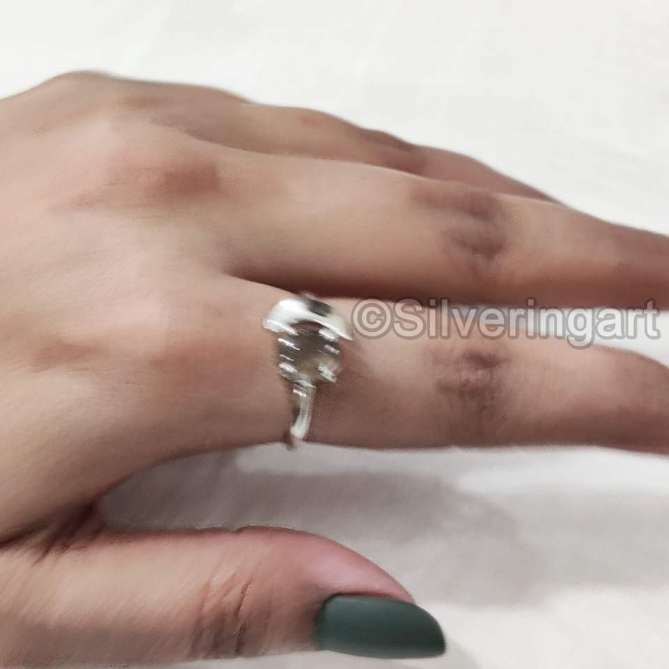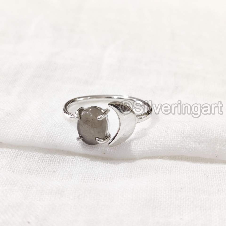 Women's Ring Natural Smoky Quartz Gemstone Quartz Birthstone Crescent Moon Christmas Handmade Jewelry 925 Sterling Silver Ring