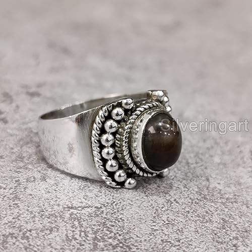 Women's Ring Natural Tiger Eye Gemstone June Birthstone Bohemian Christmas Gift Handmade Jewelry 925 Sterling Silver Ring