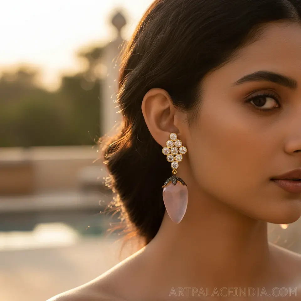 Women's Rose Quartz Drop Earrings with Gold Plating Accents Fashion Jewelry Gift