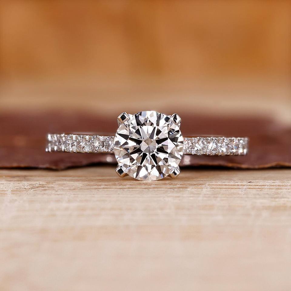 Women's Round Cut CZ Diamond Pave Setting 4 Prong Engagement Ring Trendy 925 Sterling Silver Wedding Ring Anniversary Party Gift