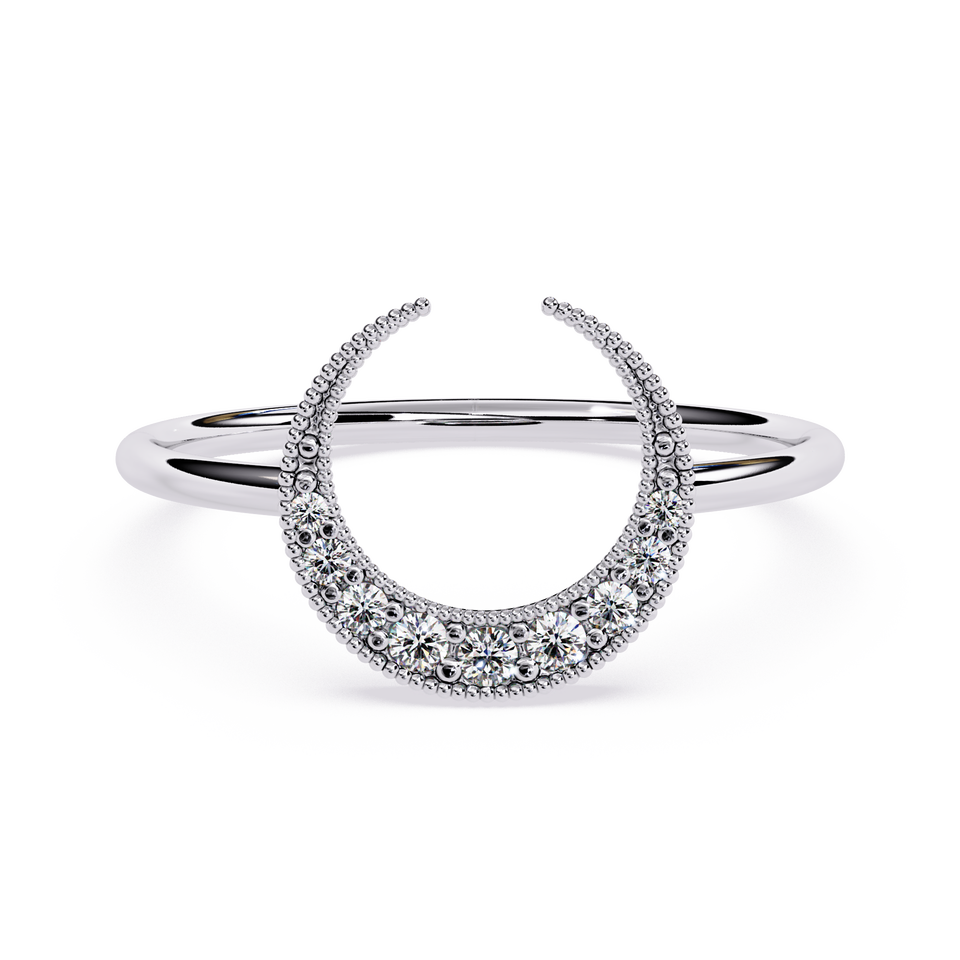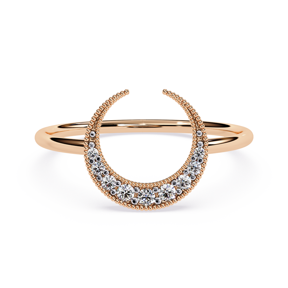 Women's Round Diamond Crescent Design Moon shaped Diamond ring in 100% Natural Diamond in 18K Solid gold with Certificate Free