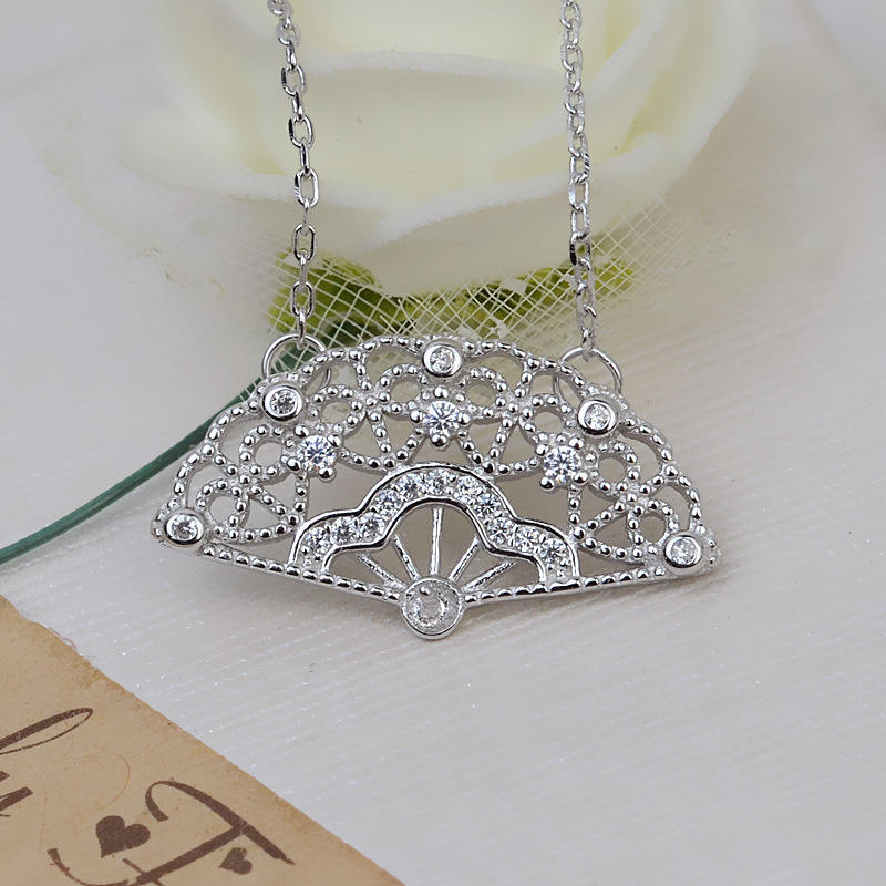 Women's S925 Silver Fine Jewelry Sets DIY Accessory Fan-Shape Earring Necklace Pendant Collarbone Chain Tire Hair Pearl Hollow