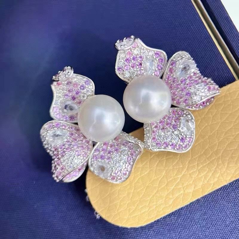Women's S925 Silver Spoon Earrings High Heels Freshwater 7-11mm Round Strong Light Fine Flaws Pearl Crystal Earrings Wholesale