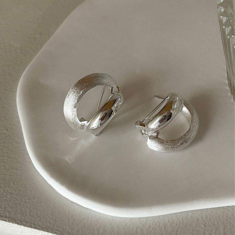 Women's S925 Sterling Silver Heavy-Duty Double-Layer Frosted Ear Buckle Light Luxury Brushed Curved Fashion Earrings