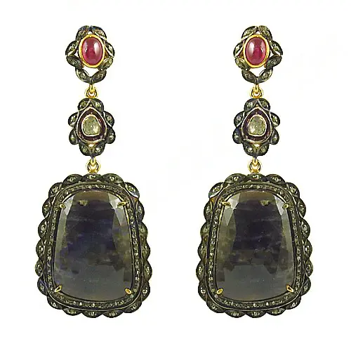 Women's Sapphire & Ruby Statement Fashion Drop Earrings Elegant Jewelry Accessory