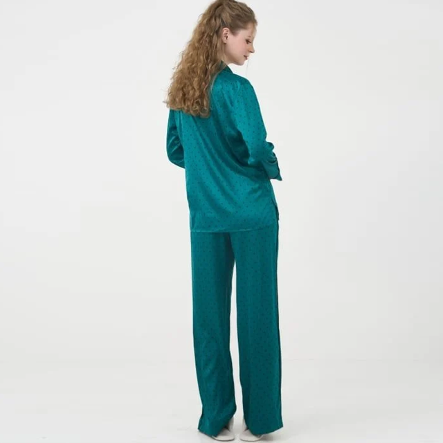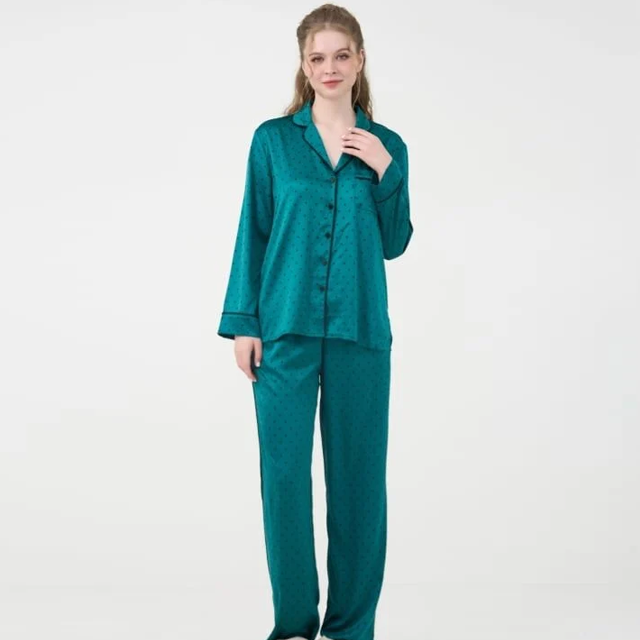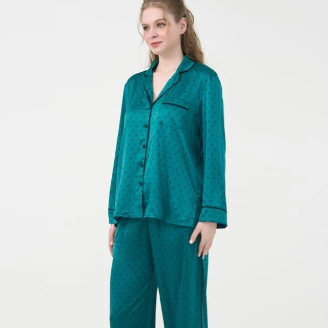 Women's Satin Long Sleeve Pajamas Set with Elastic Waist Pants for Autumn Sleepwear
