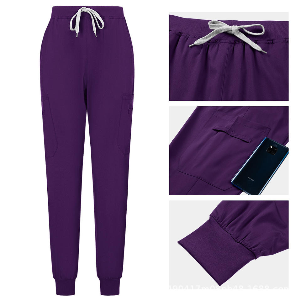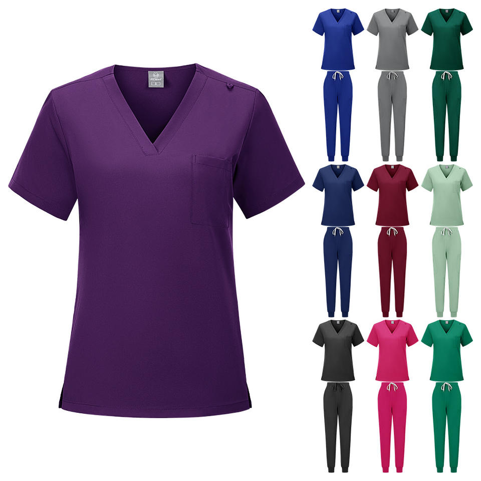 Women's Scrub Set Short Sleeve V Neck Top With Pocket Jogger Pants Hospital Uniform Moisture Wicking Split Set