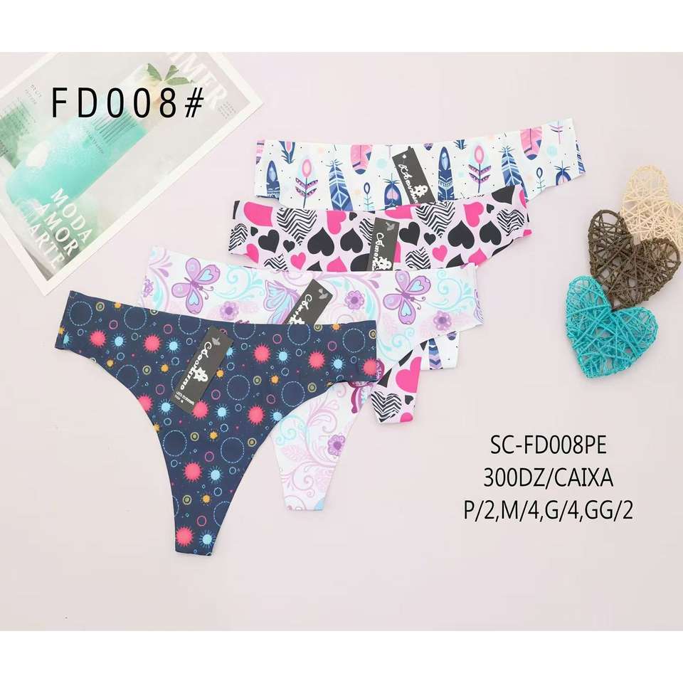 Women's Seamless Thong Panties Various Printed Patterns Comfortable Cotton Gusset Sexy OEM Wholesale Export Underwear-Size XL